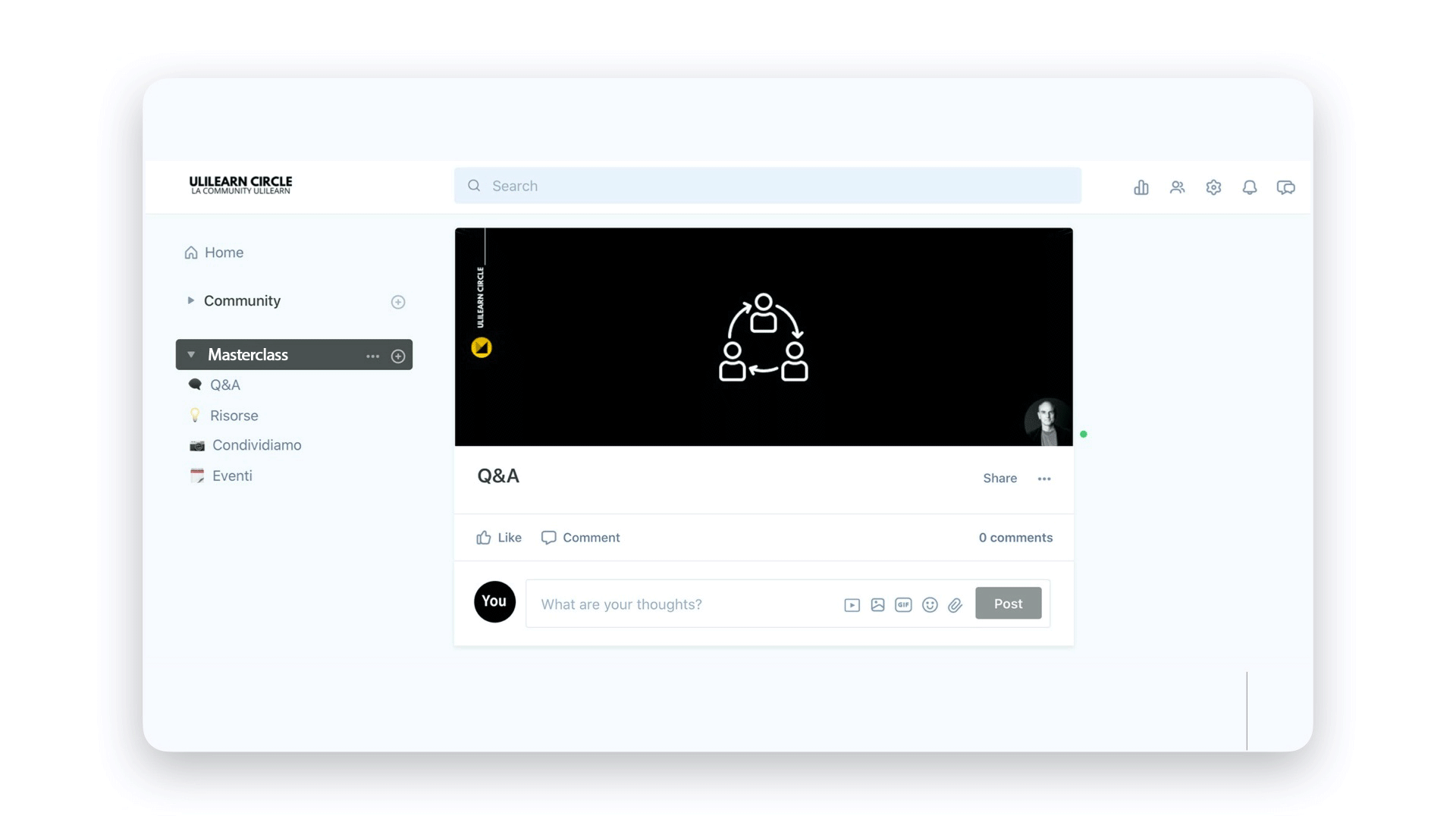 Una community dedicata per vivere la Masterclass tutti i giorni.